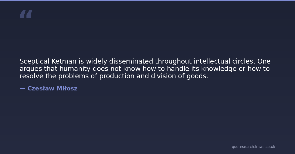 Sceptical Ketman is widely disseminated throughout intellectual circles. One argues that humanity does not know how to handle its knowledge or how to resolve the problems of production and division of goods.
