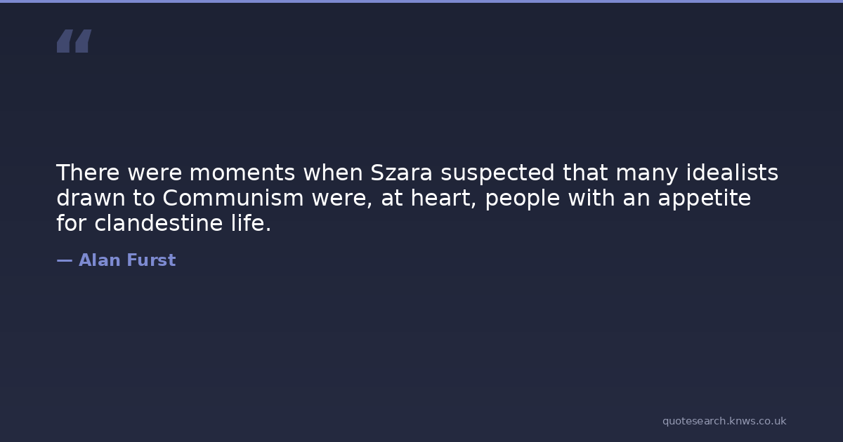 There were moments when Szara suspected that many idealists drawn to Communism were, at heart, people with an appetite for clandestine life.