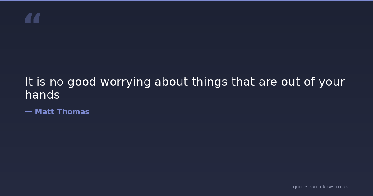 It is no good worrying about things that are out of your hands hands out-of-your-hands worry worrying worrying-about-nothing Download Image Share on X Share on Facebook Copy Link