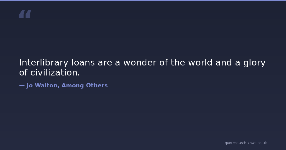 Interlibrary loans are a wonder of the world and a glory of civilization. civilization libraries Download Image Share on X Share on Facebook Copy Link