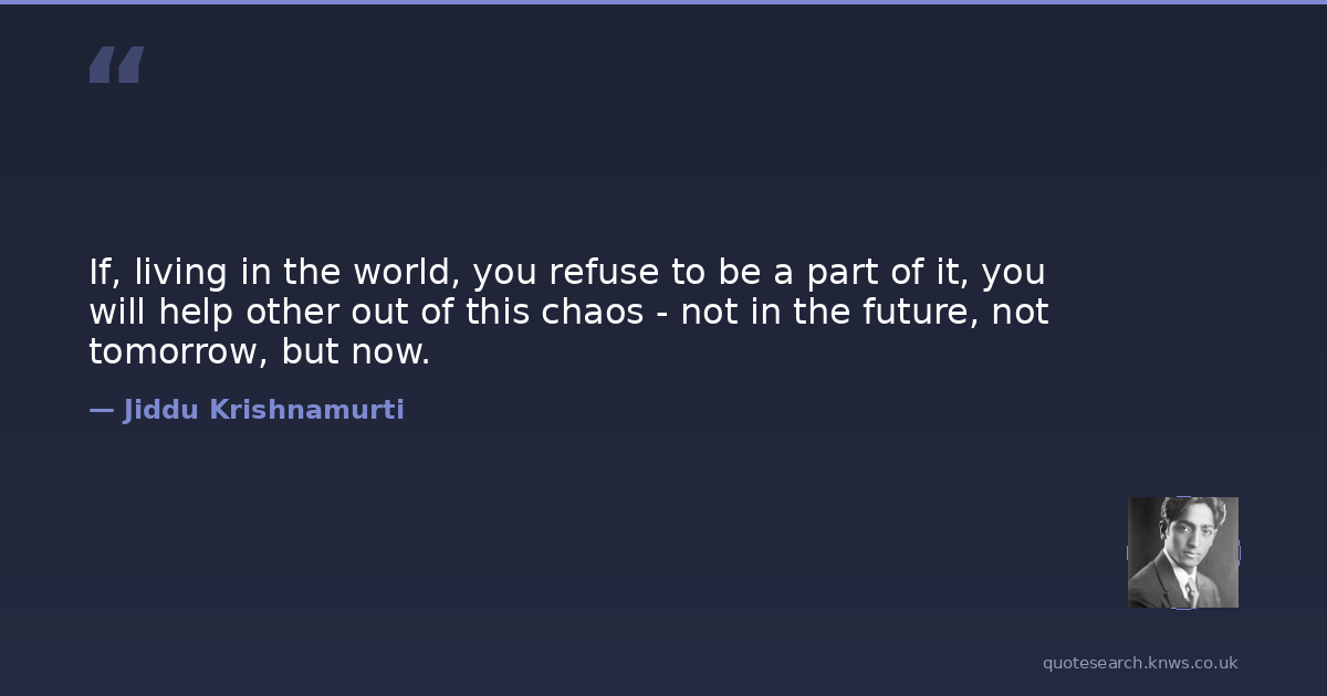 If, living in the world, you refuse to be a part of it, you will help other out of this chaos - not in the future, not tomorrow, but now.