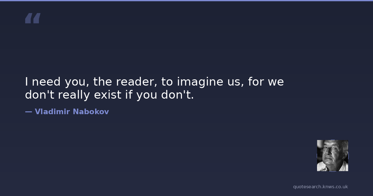I need you, the reader, to imagine us, for we don't really exist if you don't.