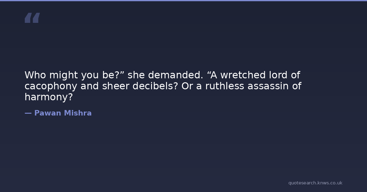 Who might you be?” she demanded. “A wretched lord of cacophony and sheer decibels? Or a ruthless assassin of harmony?