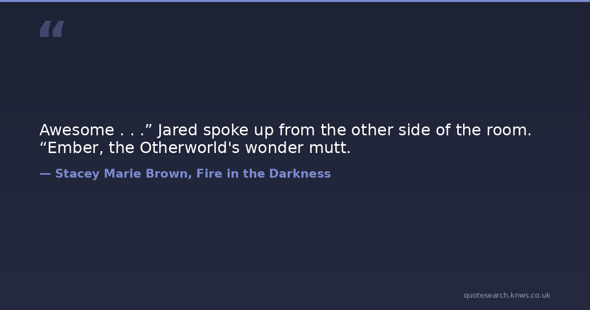 Awesome . . .” Jared spoke up from the other side of the room. “Ember, the Otherworld's wonder mutt.