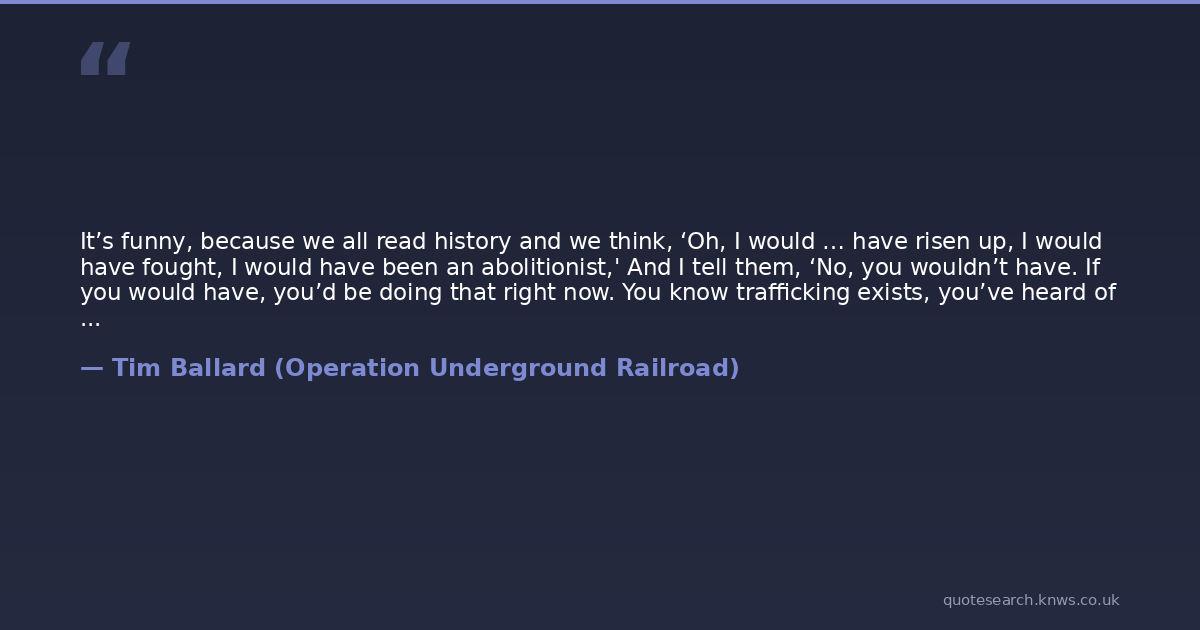 It’s funny, because we all read history and we think, ‘Oh, I would … have risen up, I would have fought, I would have been an abolitionist,' And I tell them, ‘No, you wouldn’t have. If you would have, you’d be doing that right now. You know trafficking exists, you’ve heard of it, but you don’t want to look.