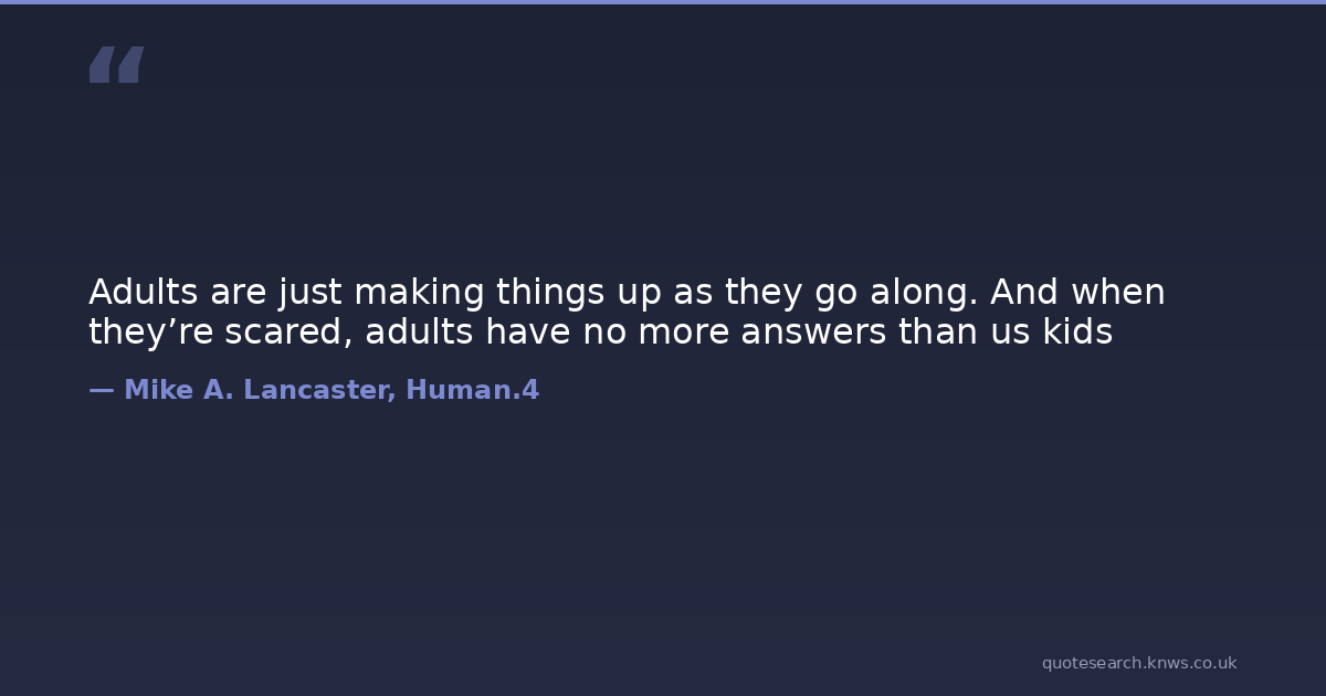 Adults are just making things up as they go along. And when they’re scared, adults have no more answers than us kids