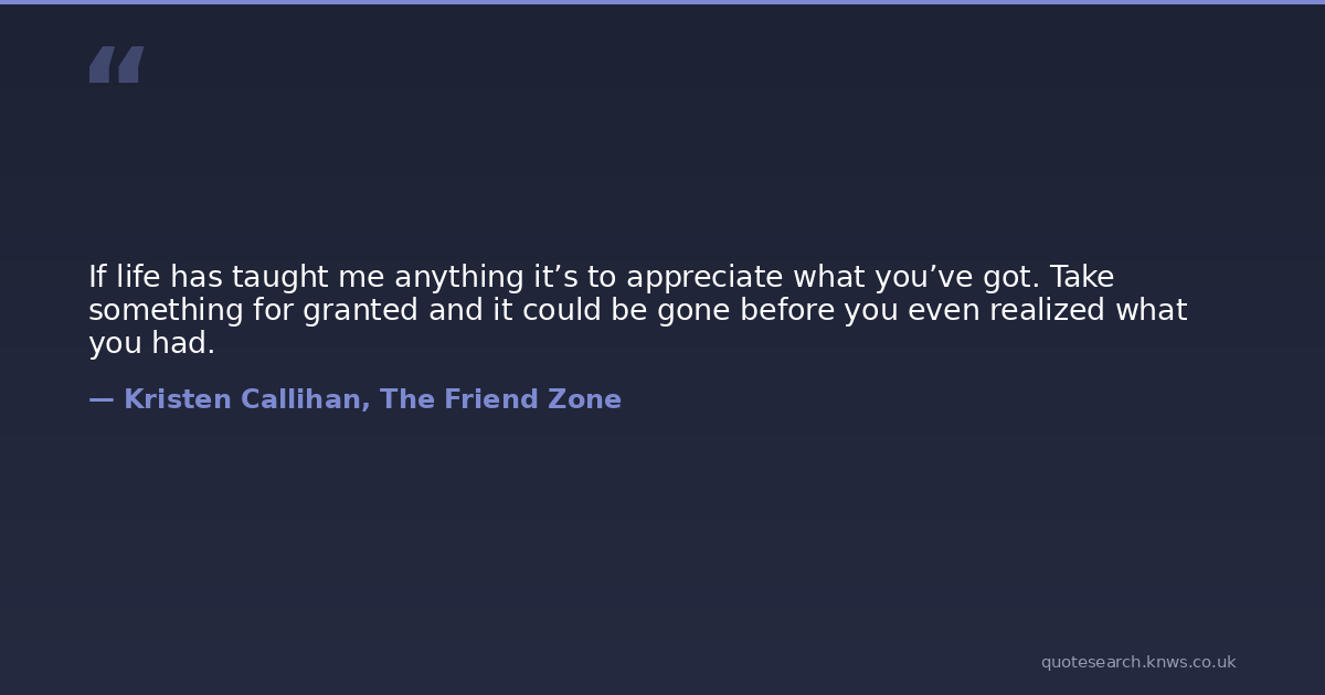 If life has taught me anything it’s to appreciate what you’ve got. Take something for granted and it could be gone before you even realized what you had.