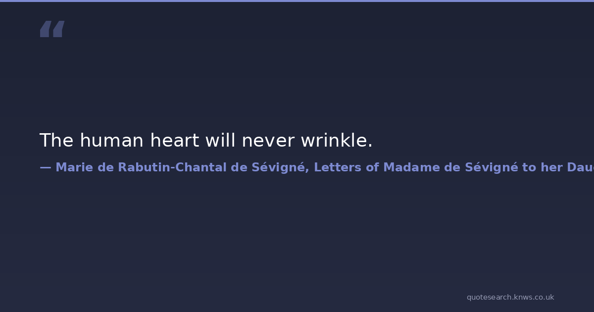 The human heart will never wrinkle. wisdom-quote Download Image Share on X Share on Facebook Copy Link