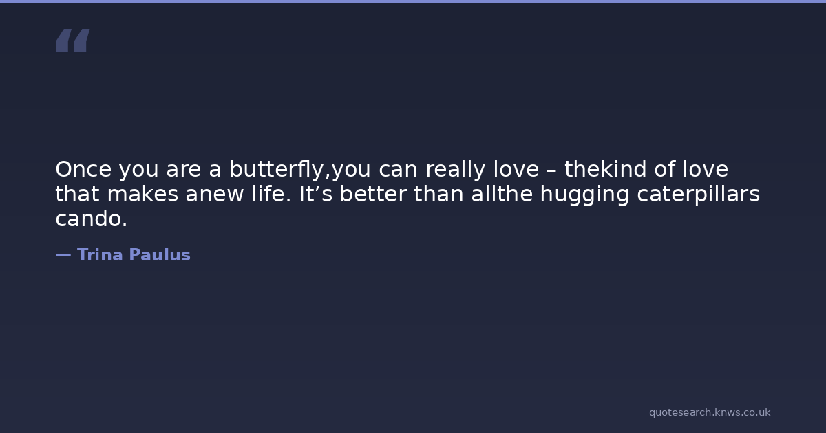 Once you are a butterfly,you can really love – thekind of love that makes anew life. It’s better than allthe hugging caterpillars cando.