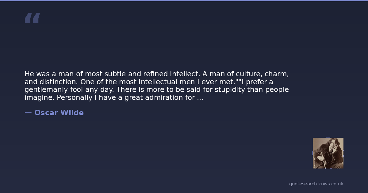He was a man of most subtle and refined intellect. A man of culture, charm, and distinction. One of the most intellectual men I ever met.""I prefer a gentlemanly fool any day. There is more to be said for stupidity than people imagine. Personally I have a great admiration for stupidity. It is a sort of fellow-feeling, I suppose.