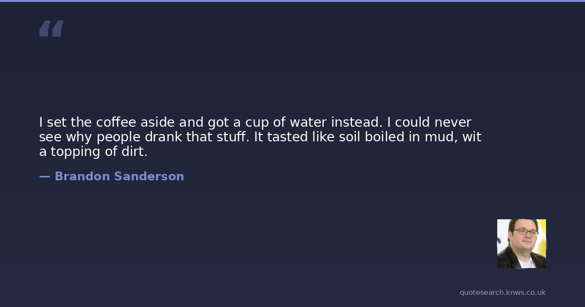 I set the coffee aside and got a cup of water instead. I could never see why people drank that stuff. It tasted like soil boiled in mud, wit a topping of dirt.