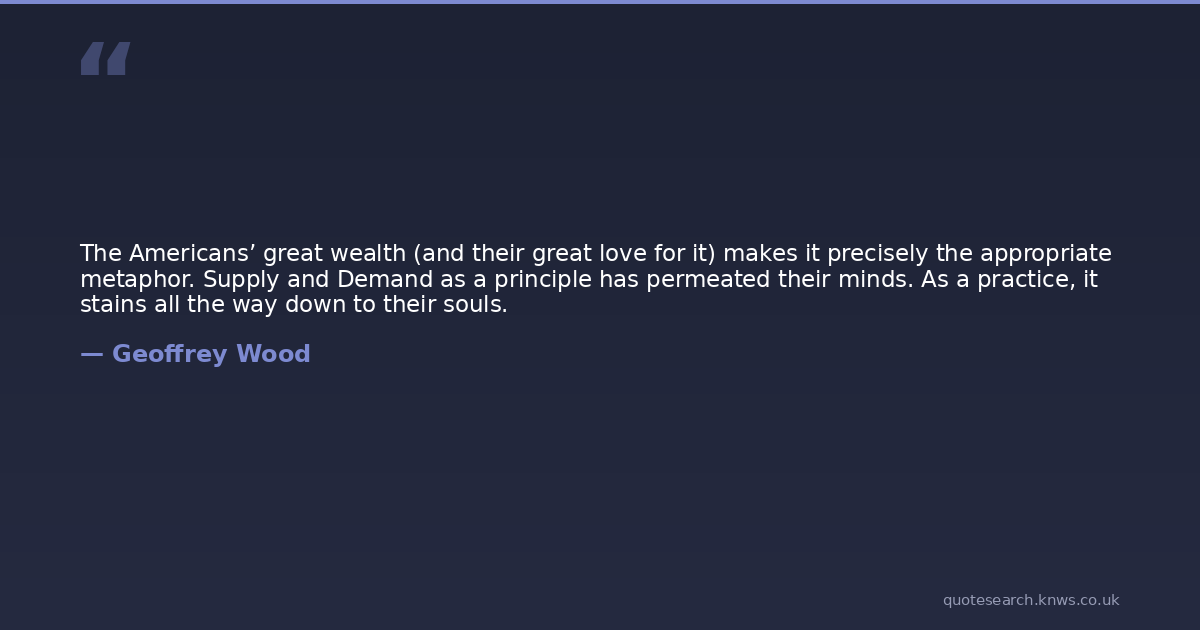 The Americans’ great wealth (and their great love for it) makes it precisely the appropriate metaphor. Supply and Demand as a principle has permeated their minds. As a practice, it stains all the way down to their souls.