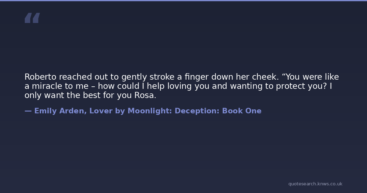 Roberto reached out to gently stroke a finger down her cheek. “You were like a miracle to me – how could I help loving you and wanting to protect you? I only want the best for you Rosa.