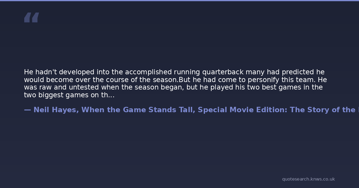 He hadn't developed into the accomplished running quarterback many had predicted he would become over the course of the season.But he had come to personify this team. He was raw and untested when the season began, but he played his two best games in the two biggest games on the schedule. He wasn't the player anybody expected him to be, but he got the job done-at times spectacularly.