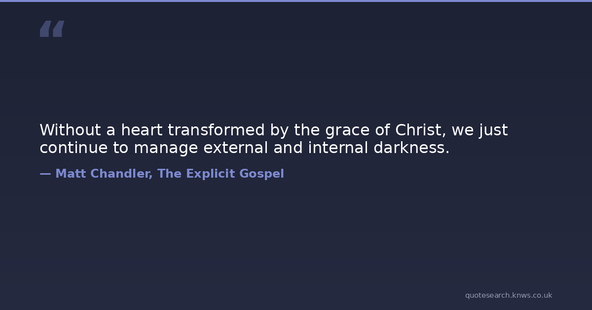 Without a heart transformed by the grace of Christ, we just continue to manage external and internal darkness. depravity grace-of-god hypocrisy Download Image Share on X Share on Facebook Copy Link