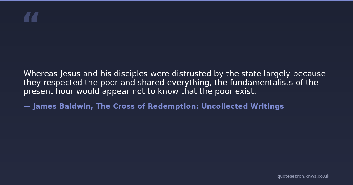 Whereas Jesus and his disciples were distrusted by the state largely because they respected the poor and shared everything, the fundamentalists of the present hour would appear not to know that the poor exist.