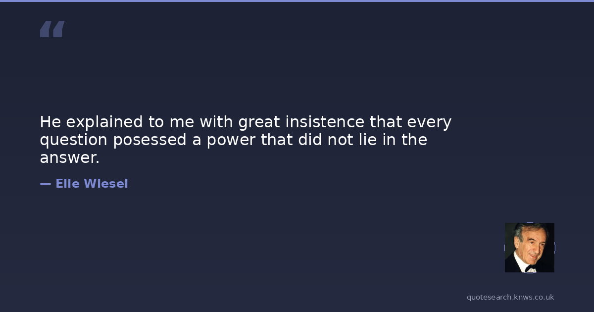 He explained to me with great insistence that every question posessed a power that did not lie in the answer.