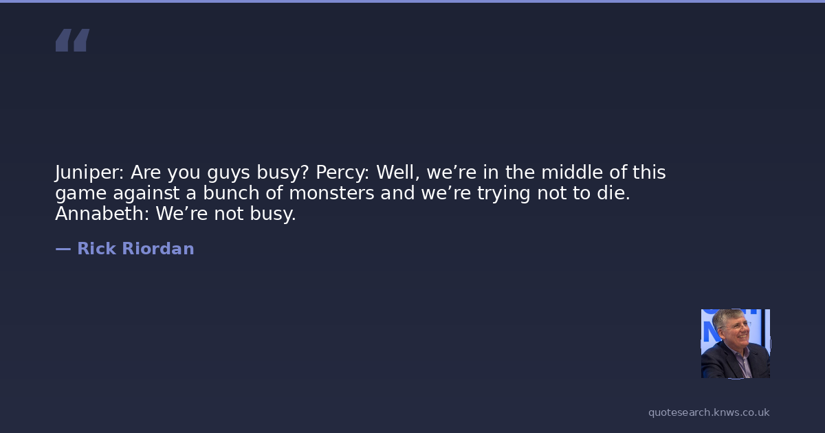 Juniper: Are you guys busy? Percy: Well, we’re in the middle of this game against a bunch of monsters and we’re trying not to die. Annabeth: We’re not busy.