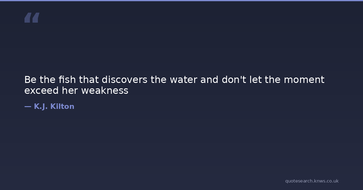 Be the fish that discovers the water and don't let the moment exceed her weakness discover weakness Download Image Share on X Share on Facebook Copy Link