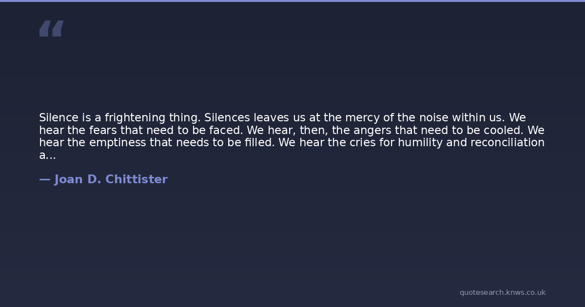 Silence is a frightening thing. Silences leaves us at the mercy of the noise within us. We hear the fears that need to be faced. We hear, then, the angers that need to be cooled. We hear the emptiness that needs to be filled. We hear the cries for humility and reconciliation and centeredness. We hear ambition and arrogance and attitudes of uncaring awash in the shallows of the soul. Silence demands answers. Silence invites us to depth. Silence heals what hoarding and running will not touch.