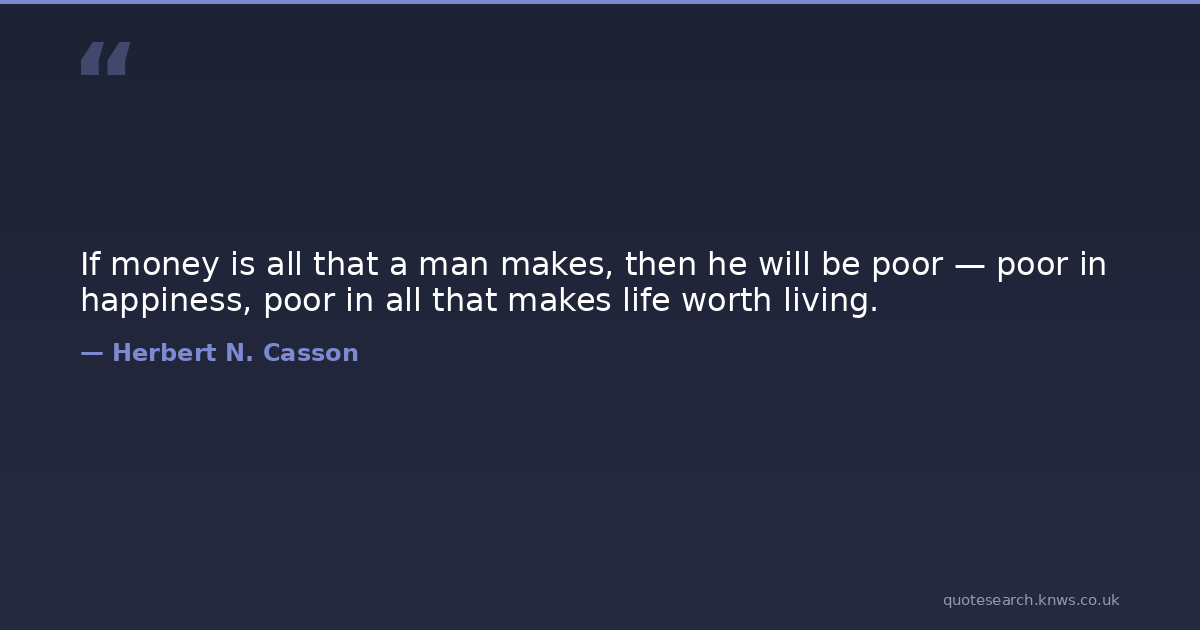 If money is all that a man makes, then he will be poor — poor in happiness, poor in all that makes life worth living.