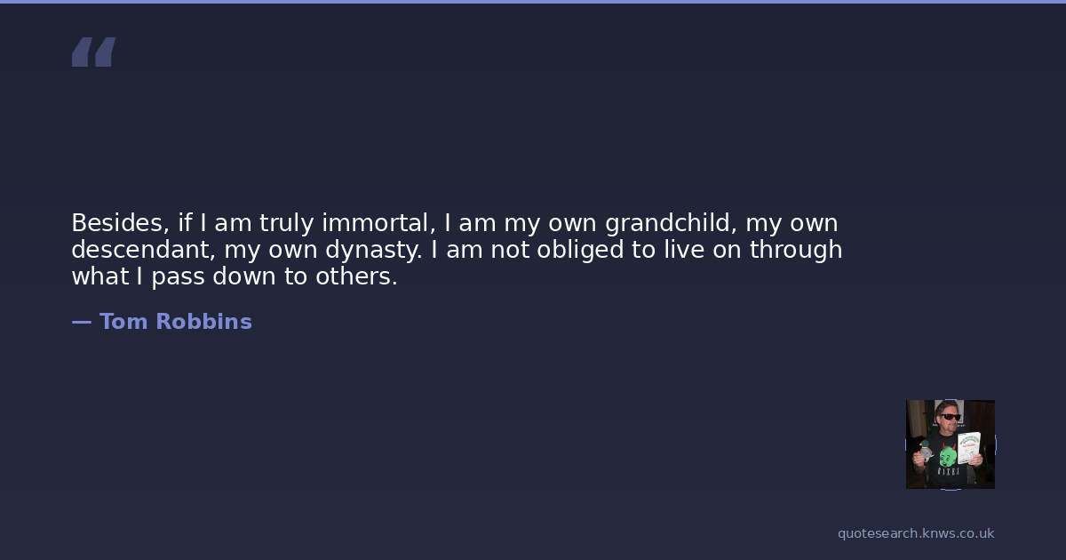Besides, if I am truly immortal, I am my own grandchild, my own descendant, my own dynasty. I am not obliged to live on through what I pass down to others.