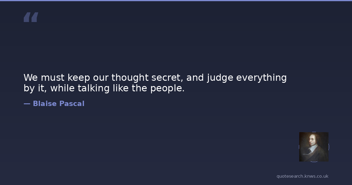 We must keep our thought secret, and judge everything by it, while talking like the people.