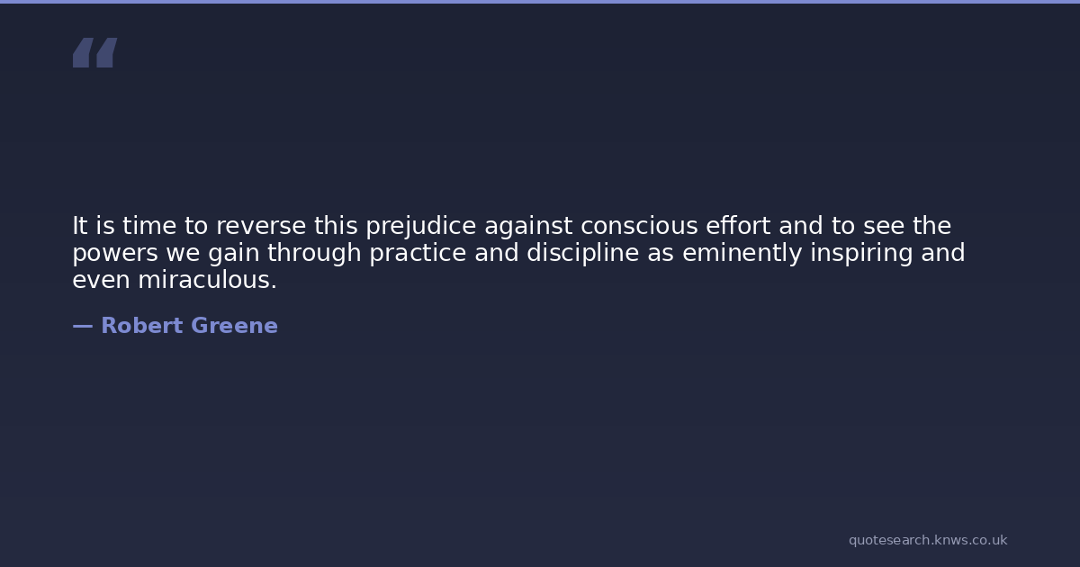 It is time to reverse this prejudice against conscious effort and to see the powers we gain through practice and discipline as eminently inspiring and even miraculous.