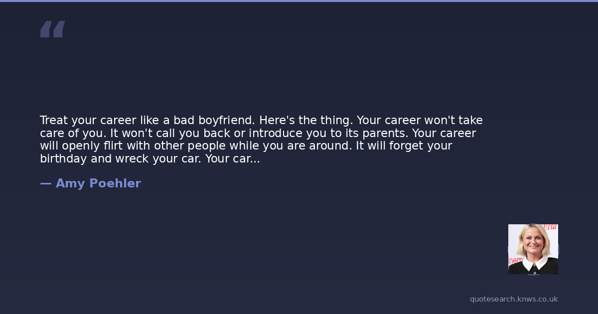 Treat your career like a bad boyfriend. Here's the thing. Your career won't take care of you. It won't call you back or introduce you to its parents. Your career will openly flirt with other people while you are around. It will forget your birthday and wreck your car. Your career will blow you off if you call it too much. It's never going to leave its wife. Your career is fucking other people and everyone knows but you. Your career will never marry you.