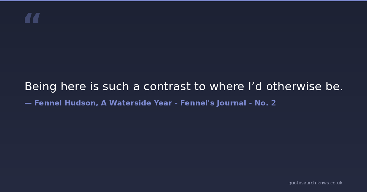 Being here is such a contrast to where I’d otherwise be.