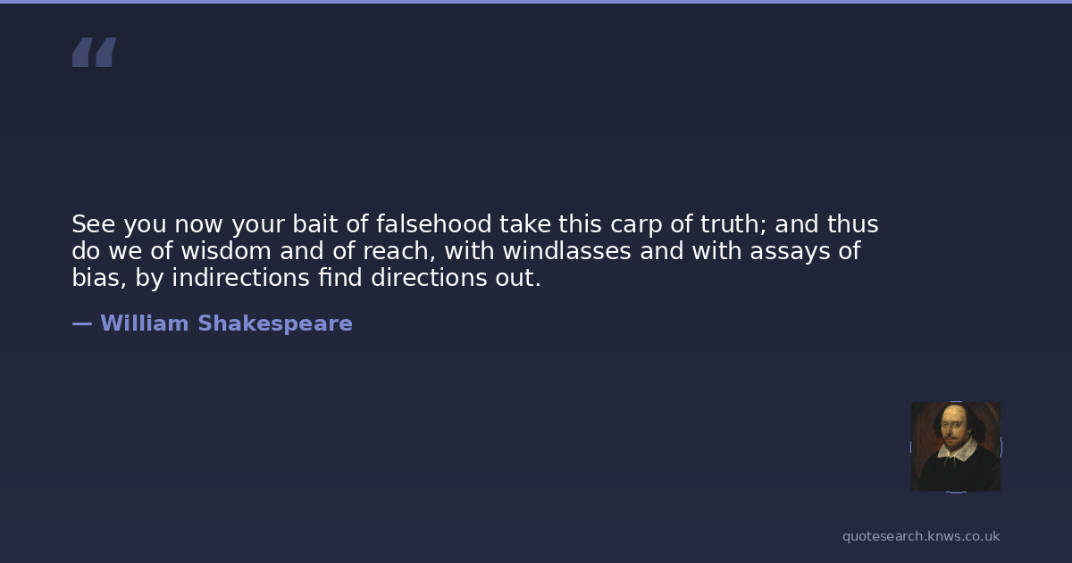 See you now your bait of falsehood take this carp of truth; and thus do we of wisdom and of reach, with windlasses and with assays of bias, by indirections find directions out.