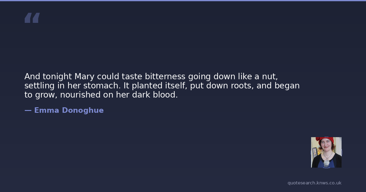 And tonight Mary could taste bitterness going down like a nut, settling in her stomach. It planted itself, put down roots, and began to grow, nourished on her dark blood.