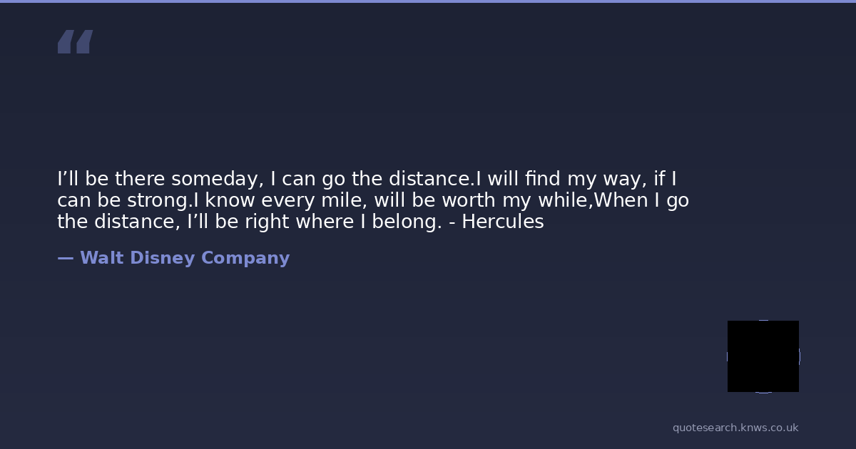 I’ll be there someday, I can go the distance.I will find my way, if I can be strong.I know every mile, will be worth my while,When I go the distance, I’ll be right where I belong. - Hercules
