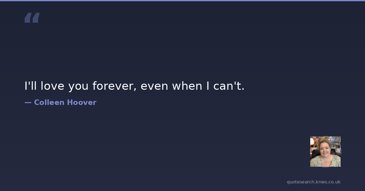 Colleen Hoover was a contemporary American writer. Margaret Colleen Hoover is an American author who primarily writes novels in the romance and young adult fiction genres. She is best known for her 2016 novel It Ends with Us. Read more on Wikipedia →