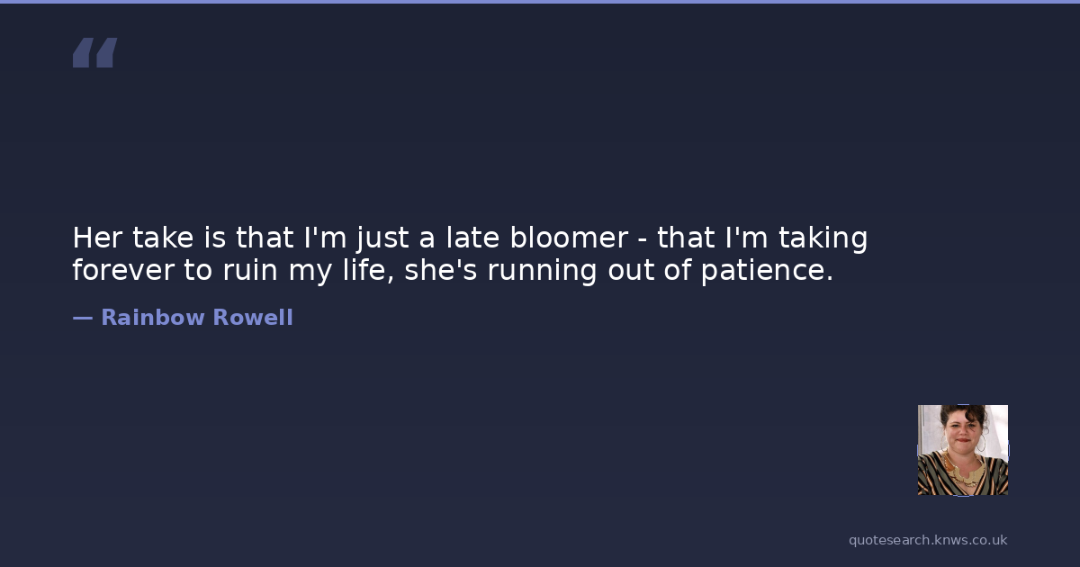 Her take is that I'm just a late bloomer - that I'm taking forever to ruin my life, she's running out of patience.