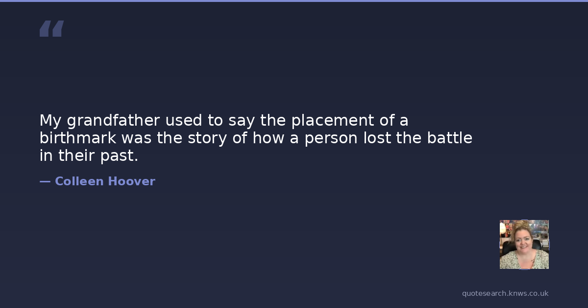 My grandfather used to say the placement of a birthmark was the story of how a person lost the battle in their past.