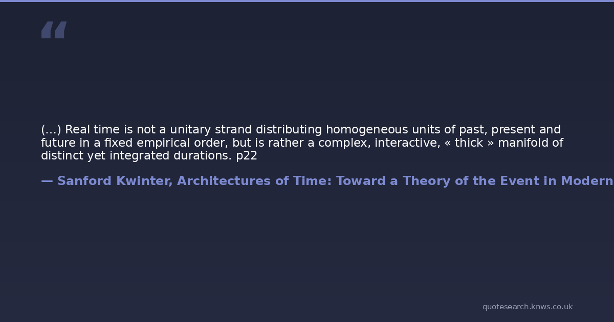 (…) Real time is not a unitary strand distributing homogeneous units of past, present and future in a fixed empirical order, but is rather a complex, interactive, « thick » manifold of distinct yet integrated durations. p22