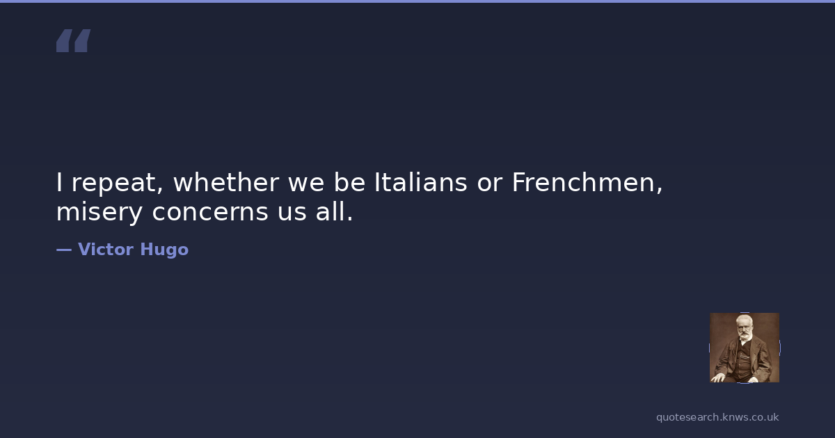 I repeat, whether we be Italians or Frenchmen, misery concerns us all.