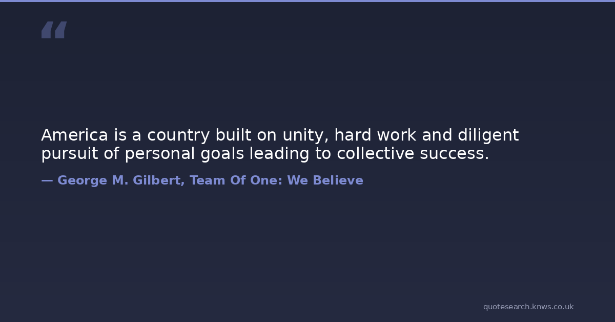 America is a country built on unity, hard work and diligent pursuit of personal goals leading to collective success.