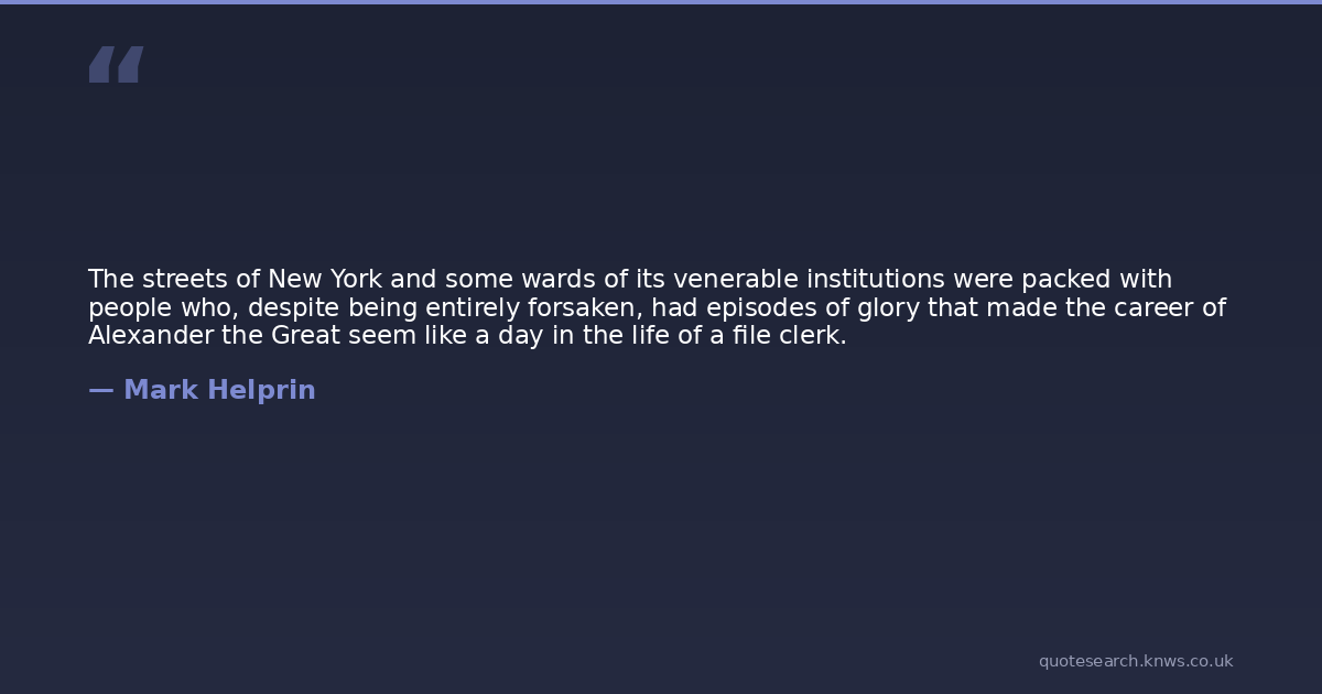 The streets of New York and some wards of its venerable institutions were packed with people who, despite being entirely forsaken, had episodes of glory that made the career of Alexander the Great seem like a day in the life of a file clerk.