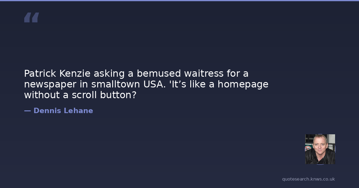 Patrick Kenzie asking a bemused waitress for a newspaper in smalltown USA. 'It’s like a homepage without a scroll button?