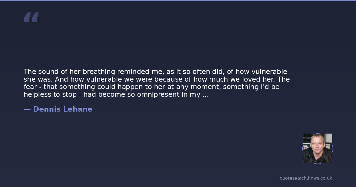 The sound of her breathing reminded me, as it so often did, of how vulnerable she was. And how vulnerable we were because of how much we loved her. The fear - that something could happen to her at any moment, something I'd be helpless to stop - had become so omnipresent in my life that I sometimes pictured it growing, like a third arm, out of the center of my chest.