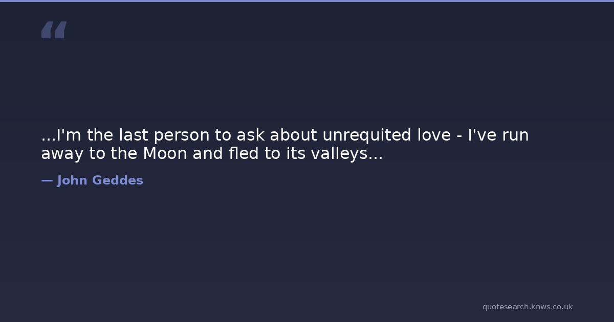 ...I'm the last person to ask about unrequited love - I've run away to the Moon and fled to its valleys...