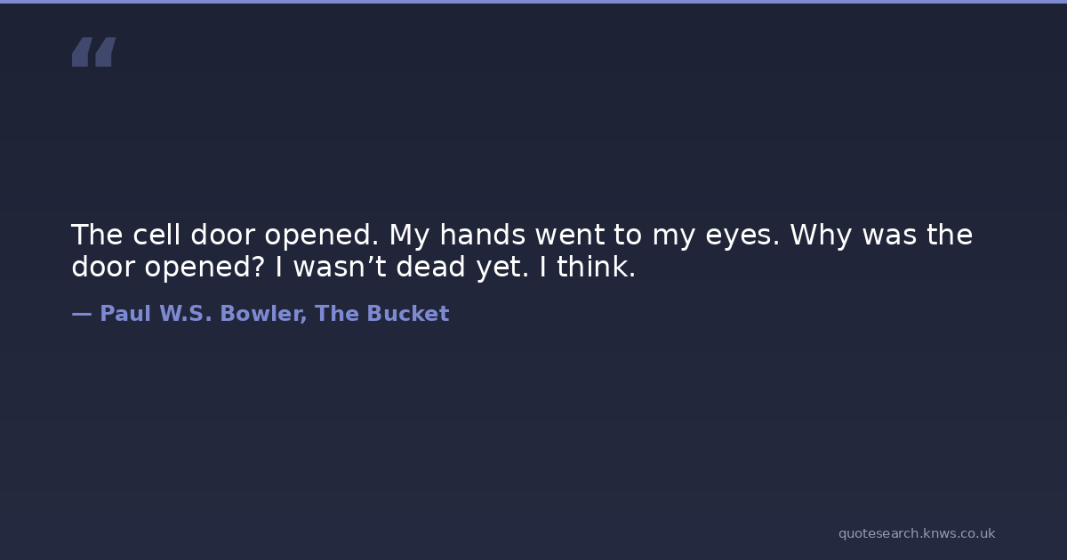 The cell door opened. My hands went to my eyes. Why was the door opened? I wasn’t dead yet. I think. fantasy-fiction short-stories Download Image Share on X Share on Facebook Copy Link