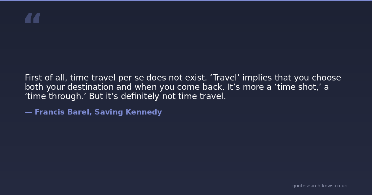 First of all, time travel per se does not exist. ‘Travel’ implies that you choose both your destination and when you come back. It’s more a ‘time shot,’ a ‘time through.’ But it’s definitely not time travel.