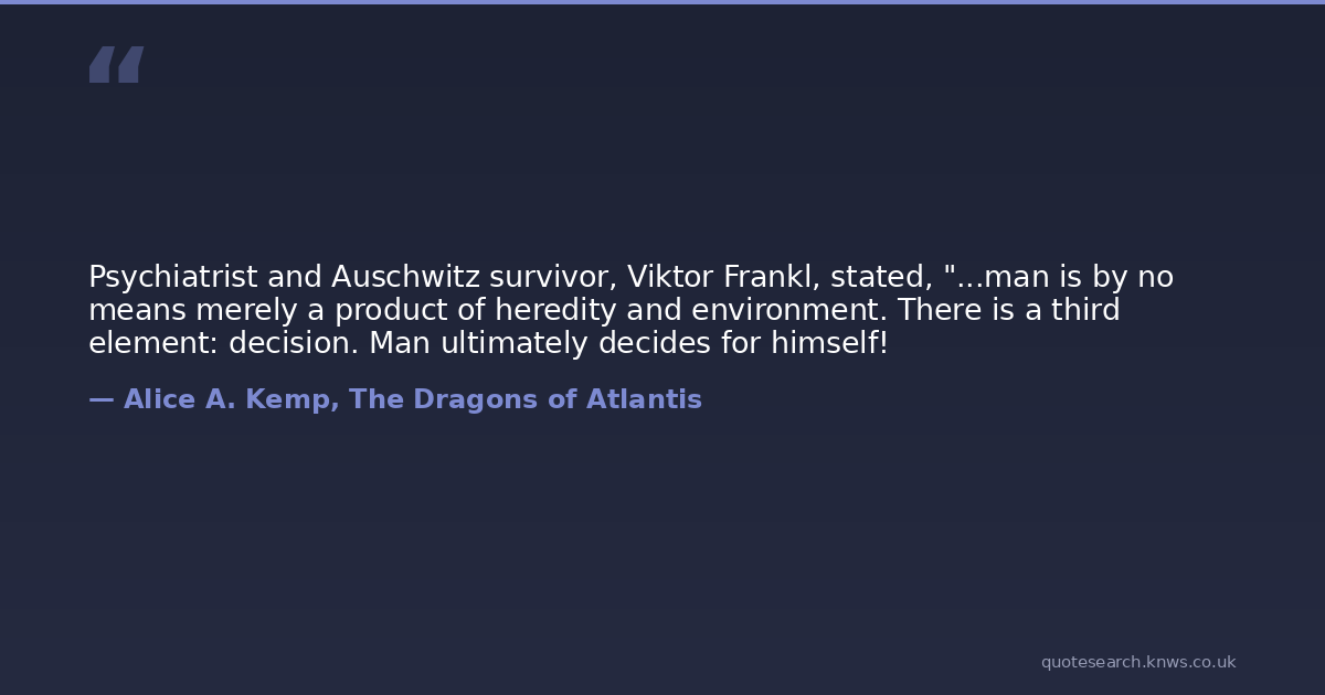 Psychiatrist and Auschwitz survivor, Viktor Frankl, stated, "...man is by no means merely a product of heredity and environment. There is a third element: decision. Man ultimately decides for himself!