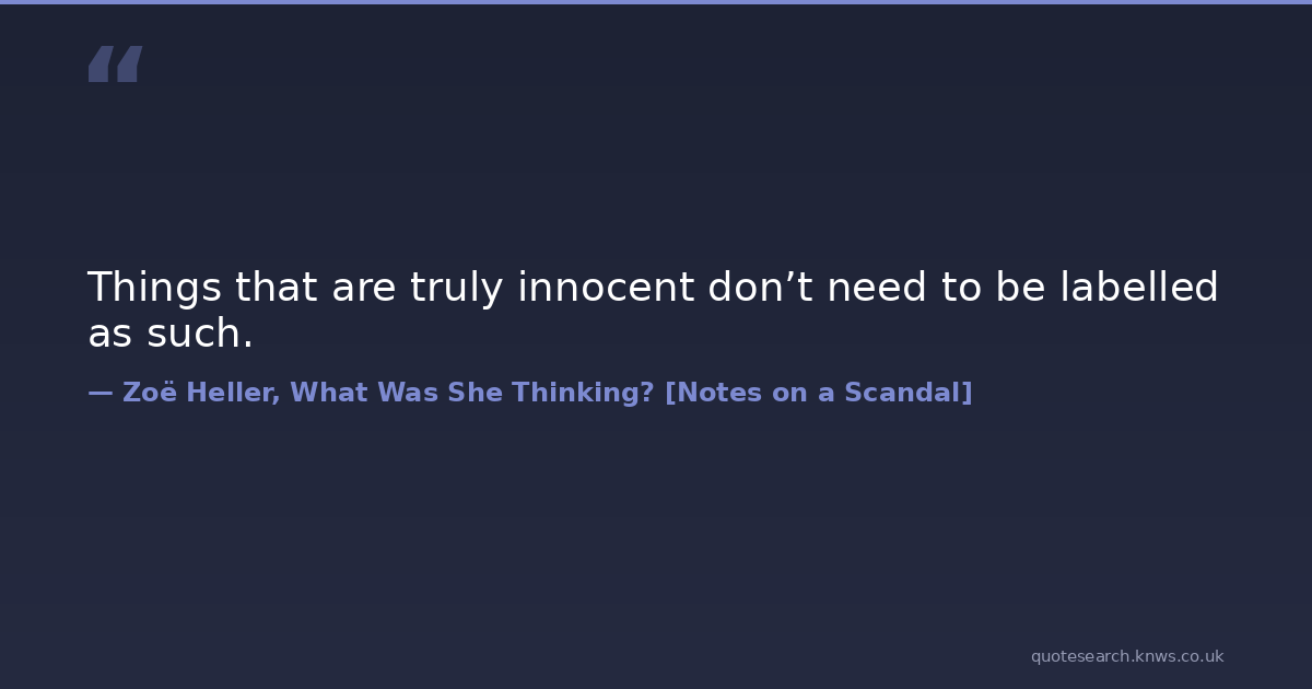 Things that are truly innocent don’t need to be labelled as such. innocence Download Image Share on X Share on Facebook Copy Link