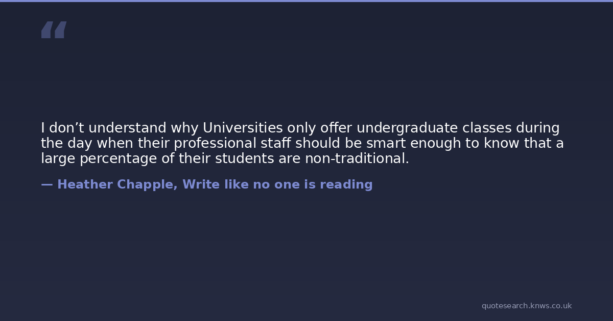 I don’t understand why Universities only offer undergraduate classes during the day when their professional staff should be smart enough to know that a large percentage of their students are non-traditional.