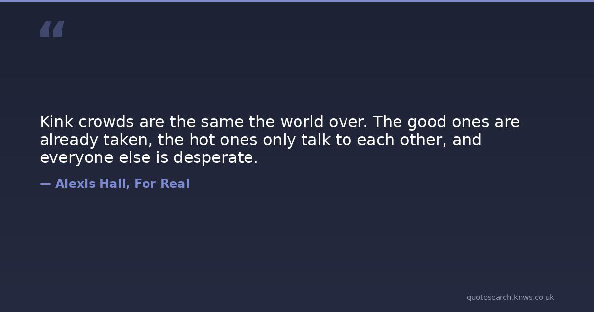Kink crowds are the same the world over. The good ones are already taken, the hot ones only talk to each other, and everyone else is desperate.