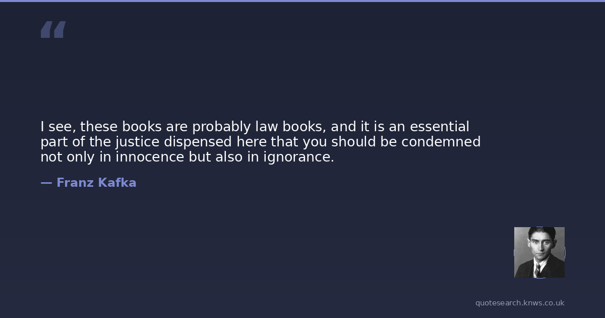 I see, these books are probably law books, and it is an essential part of the justice dispensed here that you should be condemned not only in innocence but also in ignorance.